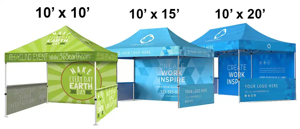Just in time for summer, the 10 foot Event Tent is the next level in outdoor advertising. Achieve 360 degrees of branding with a custom full fabric dye sub canopy and hardware package. 10'x10', 10'x15' and 10'x20' tents now available!